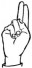 На ћирилици написано БУДИМИР ЦРЕПУЉАРЕВИЋ састоји се из 19 слова [?]. Исписано ћириличном једноручном азбуком за глувонеме: